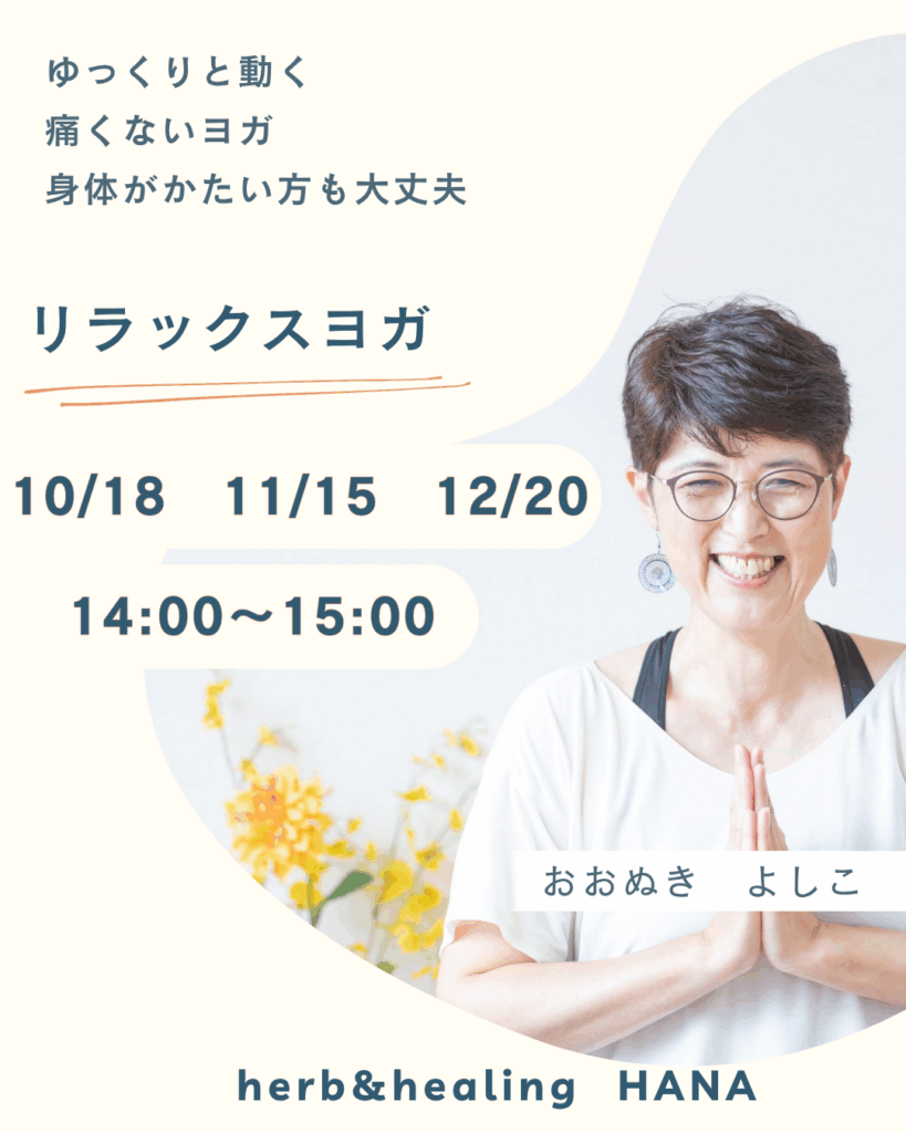 ※持ち物 ヨガマット(貸出あり)飲み物 タオル