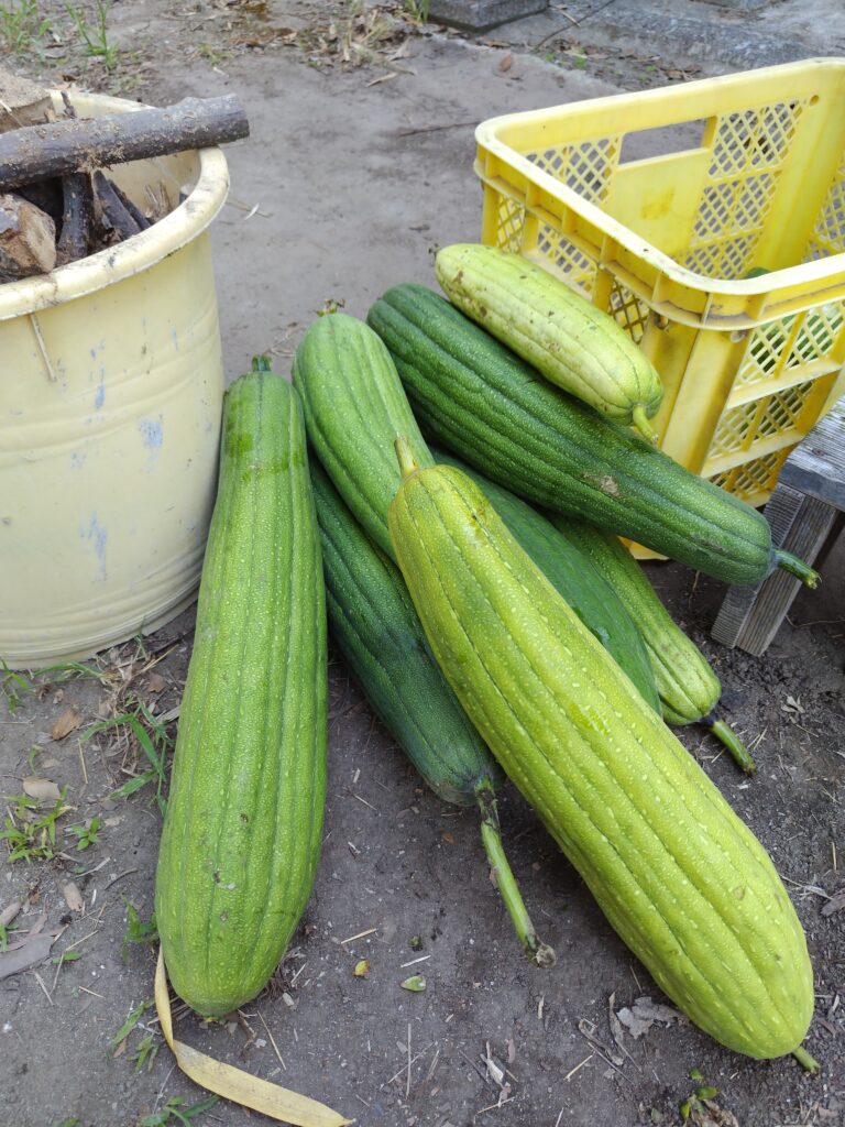今年は猛暑の影響もあってか、緑のまま硬く育った立派なへちまができました。