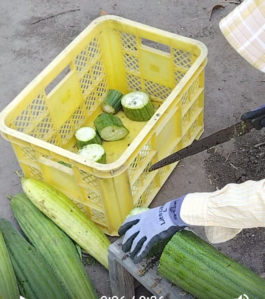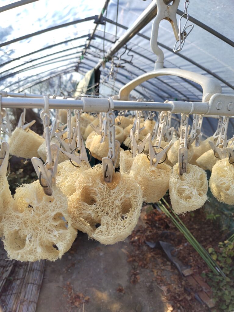 ハウスの中はへちまの香りに包まれ、秋の日差しの中でゆっくりと乾いていきます。