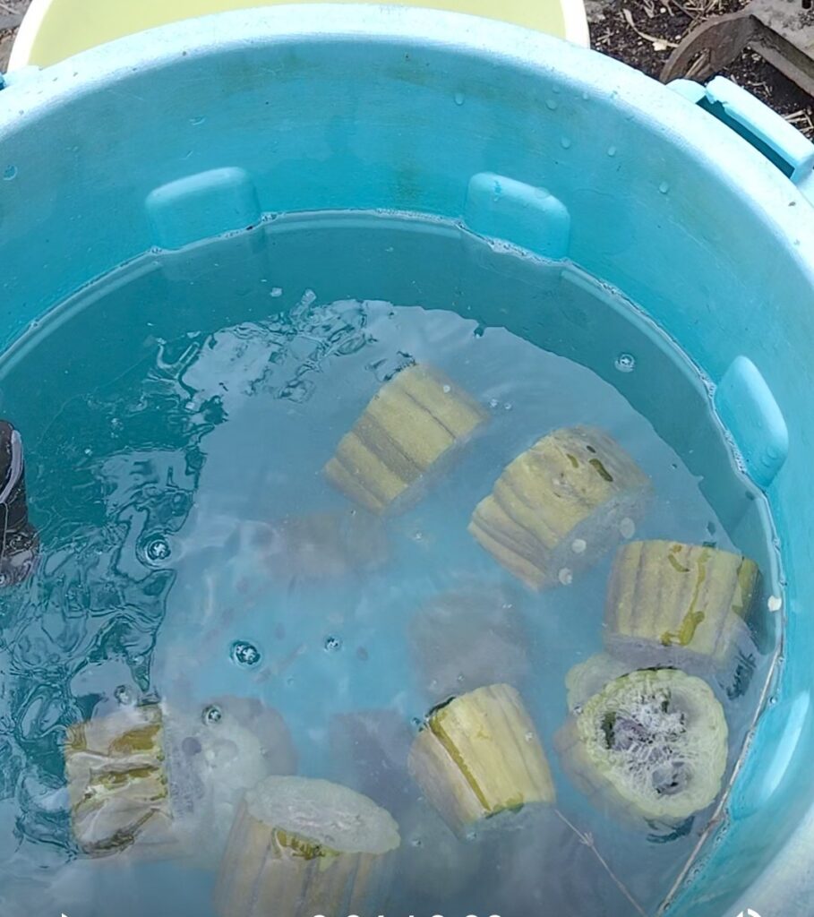 9月に収穫したへちまが、いよいよ“へちまたわし”へと変身します。