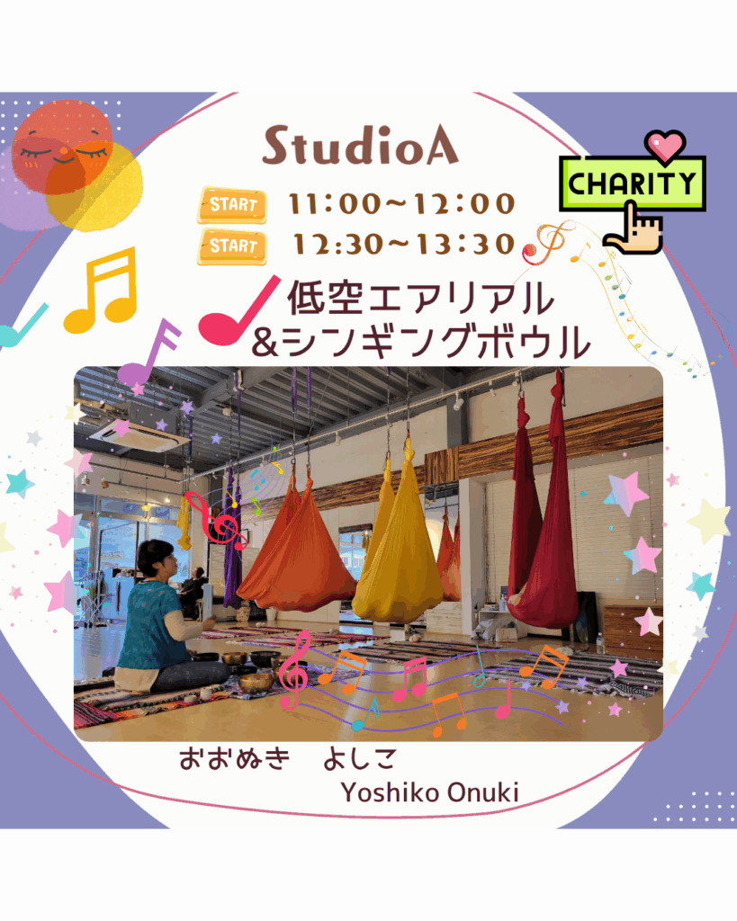 私は低空エアリアルヨガ&シンギングボウルを担当します。