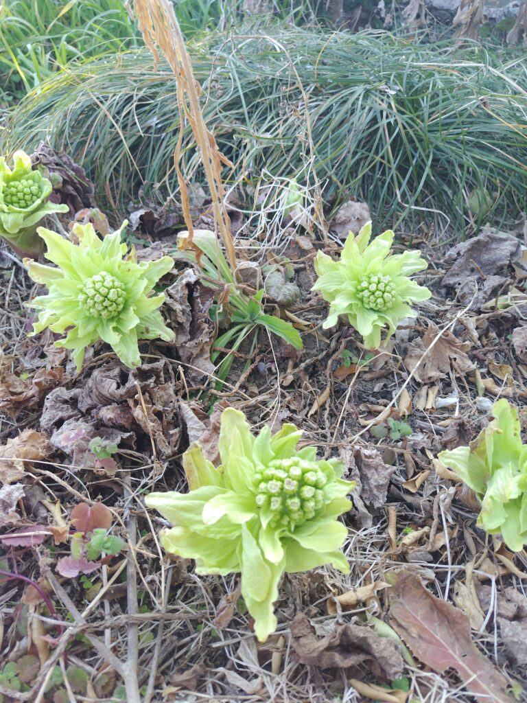 庭のすみに目を向けると、蕗の薹が小さく顔を出していました。
