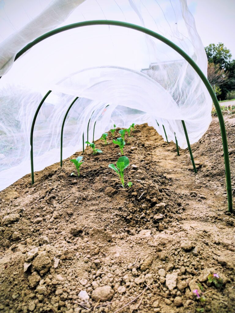 そっとネットのトンネルをかけて、無事に根づくのを見守ることにしました。